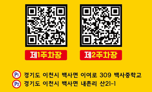 - 제1 주차장 셔틀: 경기도 이천시 백사면 이여로 309 백사중학교