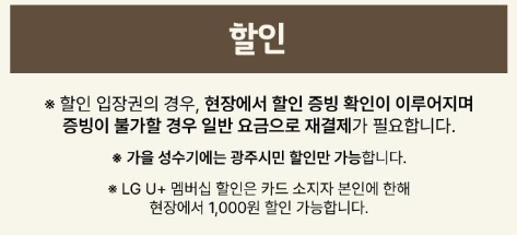 국가유공자와 그 가족분들을 위한 할인도 있습니다. 성인 기준 10,000원에 입장 가능하며, 국가유공자증을 꼭 지참해야 합니다.